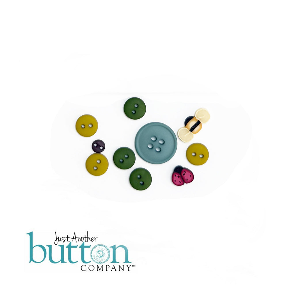 The same buttons are shown on both the cross stitch (#10805xs) and the embroidered version (#10806)--8 dyed round buttons and a clay bee and ladybug. One set of buttons is included when the chart/pattern is purchased.