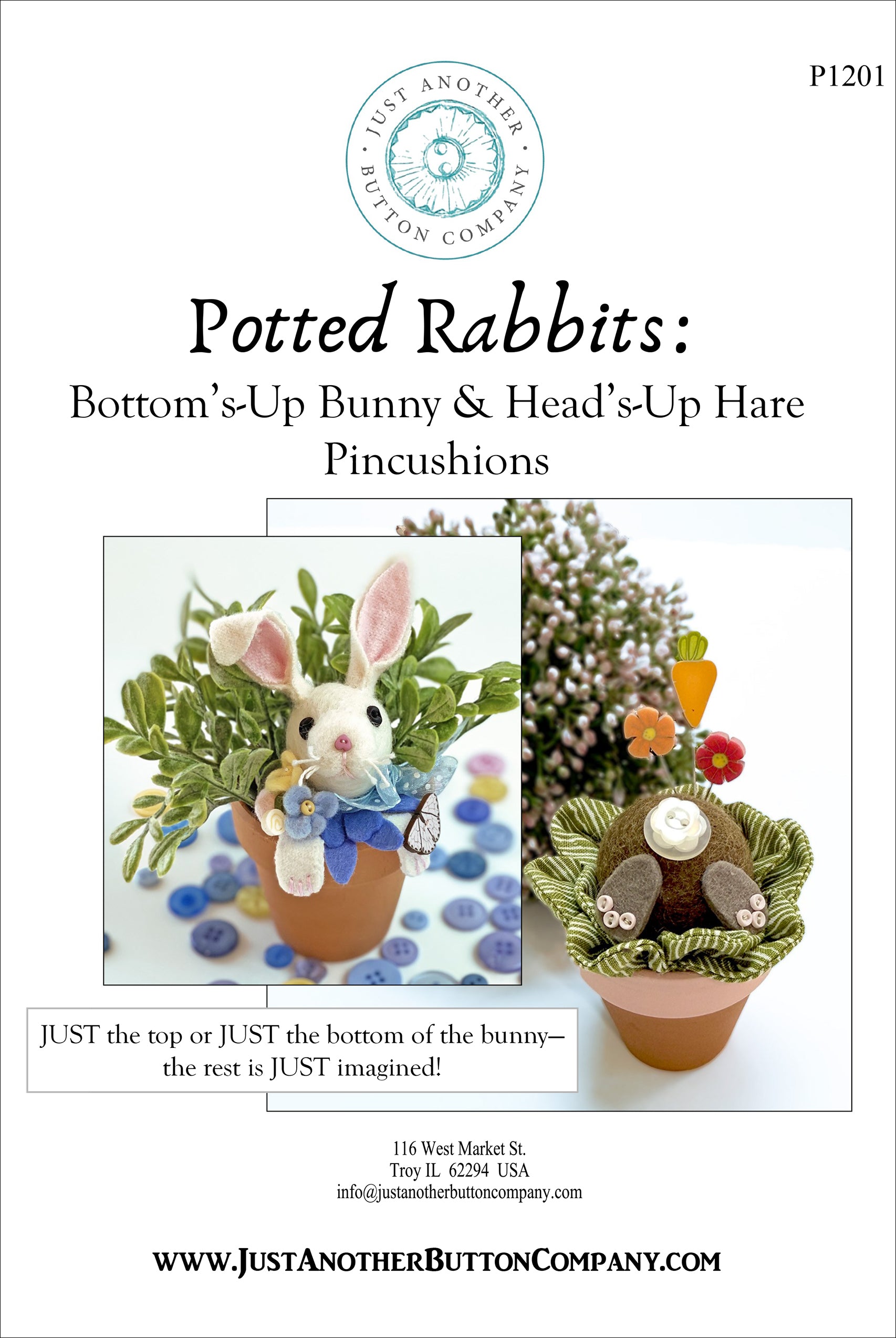 Pattern only to make both the Bottom's-Up Bunny and Head's-Up Hare pincushions.