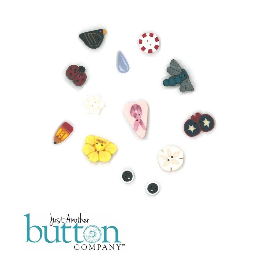 Pre-packaged assortment of Just Another Button Company buttons only. Other buttons sold separately.